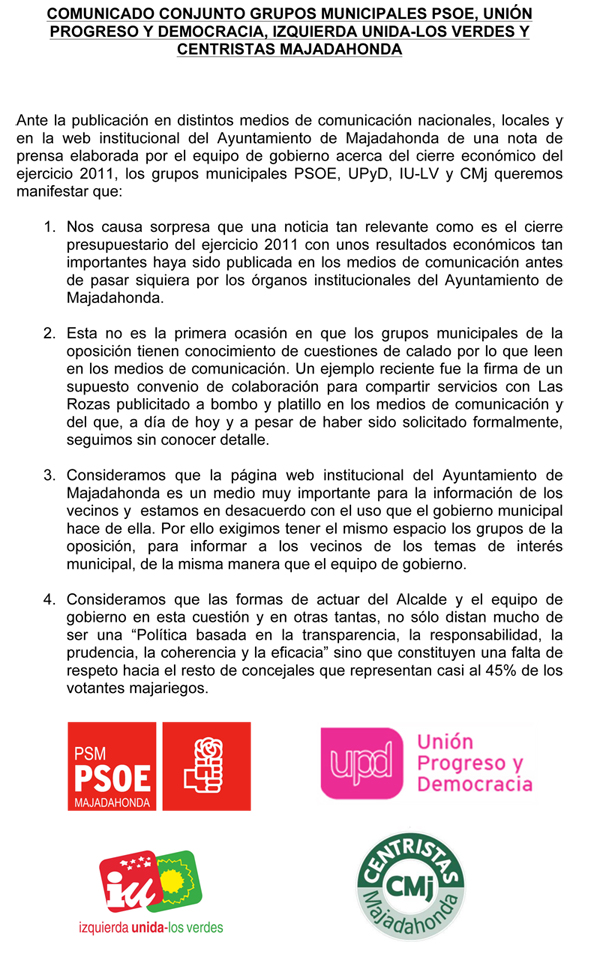 Acuerdo de todos los grupos políticos de Majadahonda para...
